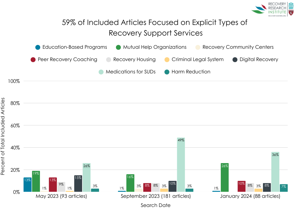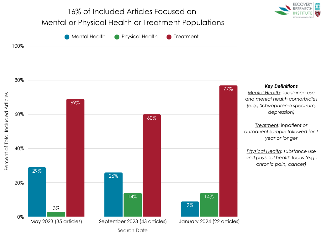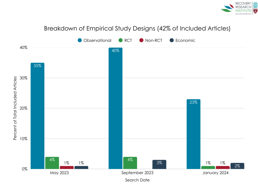 The Recovery Research Institute (RRI) has been gifted the distinct honor of maintaining and updating the Bibliography, and in approaching this valuable undertaking, we discussed how to best continue the Bibliography and ensure citation selection remains a systematic and transparent process. Given the large number of potential studies that could be included, studies were defined as focusing on recovery if they examined recovery community supports, including online programs or examined services that link patients to services outside the clinical realm (for further details, view our set of inclusion criteria). To ensure reproducibility, we are using a systematic electronic database search that is updated on a quarterly basis and instituted additional approaches to reduce the potential for bias when deciding whether or not a study should be included in the bibliography (see Methods).