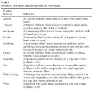 Definitions of problem behviors provided to respondents – Growing Awareness of Behavioral Addictions Are They More or Less Stigmatized than Alcohol & Drug Addictions – Thege-Table-2