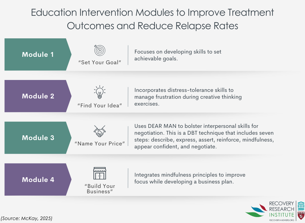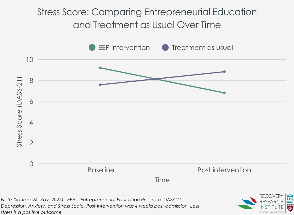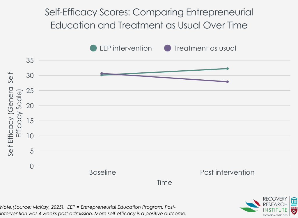 For treatment professionals and treatment systems: The preliminary findings suggest that a strength-based entrepreneurial education intervention may serve as a valuable adjunctive therapy. Treatment systems and clinicians aiming to maximize resources could benefit from implementing it or a similar intervention, given the scalability, low cost, and minimal risk relative to the potential benefits.