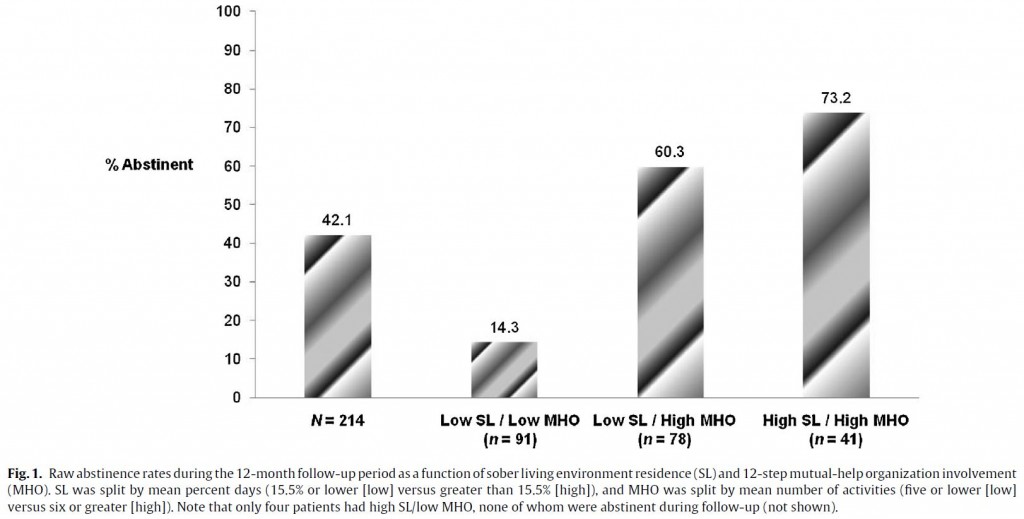 Raw abstinence rates during 12 month follow up -Do Young Adults Need Both Clinical & Non-clinical Continuing Care After Residential Treatment- professional continuing care – Bergman-Graph