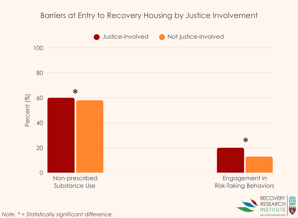 These findings were based on recovery home residents in Virginia, which may not generalize to other states or countries. State-level policies and practices may differentially impact those with justice involvement.